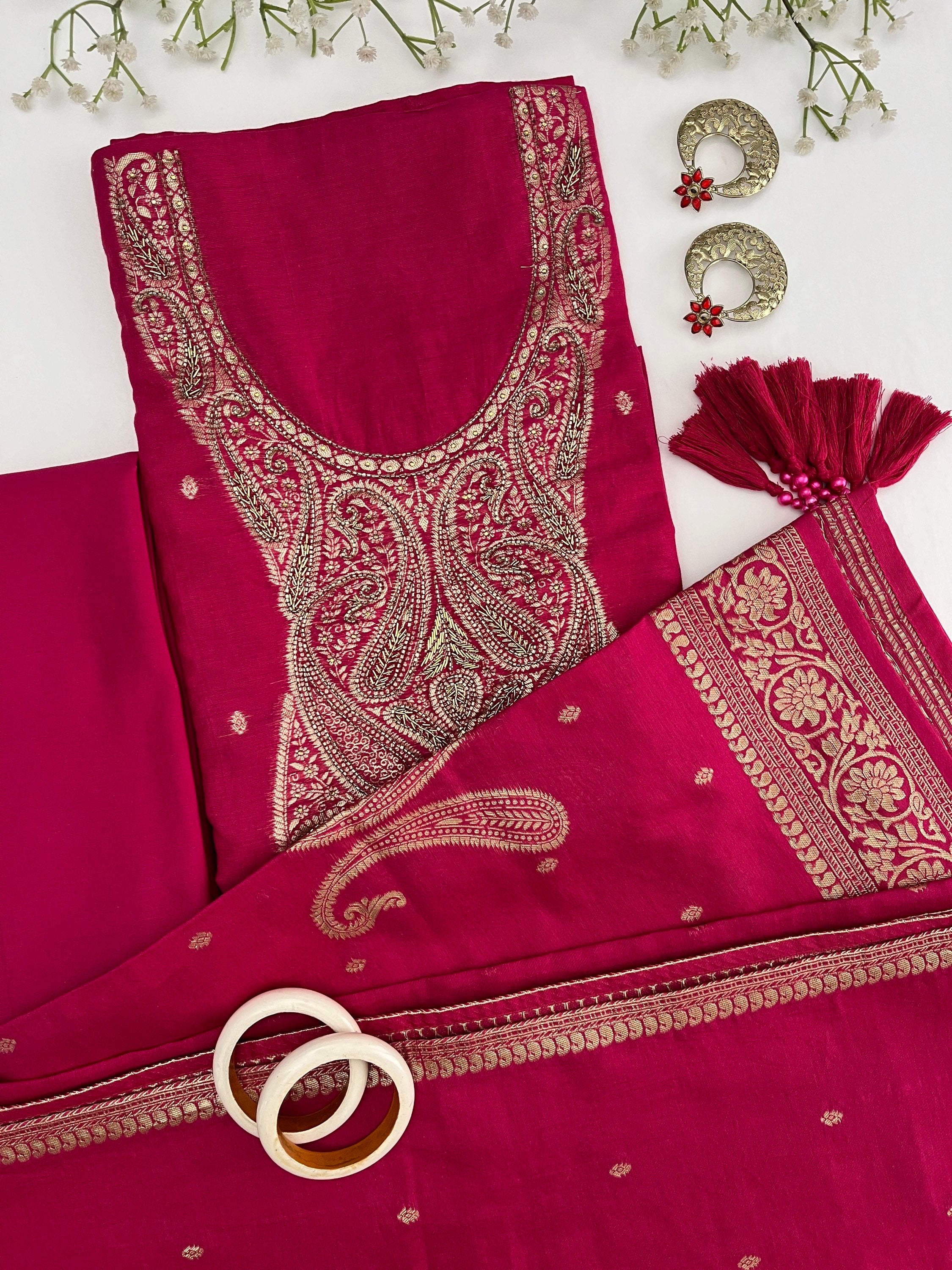 Zardozi Elegance Cotton Silk In Banrasi Weave Unstitched Suit Set